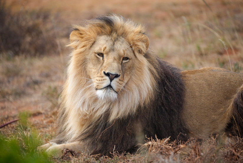 Image 1) A content lion observed from a distance at Born Free’s Big Cat Sanctuary, Shamwari Private Game Reserve ©dawnwildphoto VS. Image 2) A tame lion kept in captivity for entertainment ©Born Free